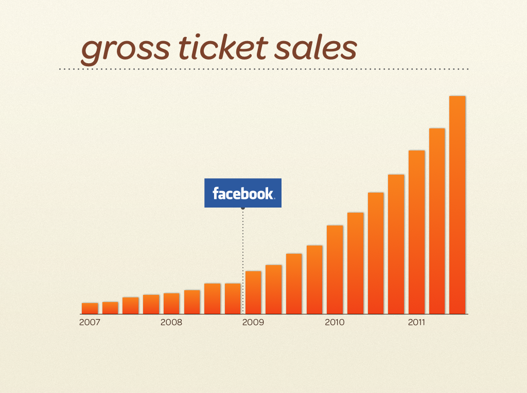 Eventbrite is heavily benefiting from Facebook integration. In 2011, the company reported that every time an event was shared on Facebook, it generated an additional $2.52 on average in ticket sales for event organizers and 11 clicks back to the Eventbrite page. And this was before the launch of Facebook’s Open Graph in early 2012, and the introduction of “actions” like “bought,” or “want” or “watch,” etc.
