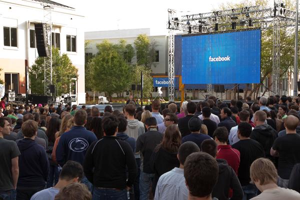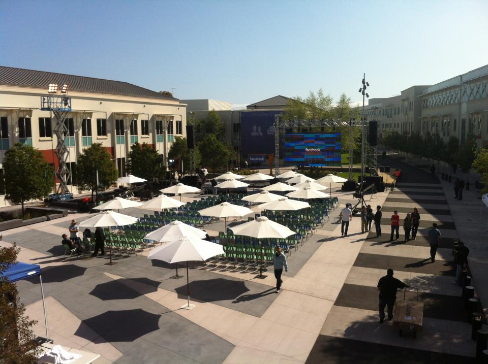 Hundreds of Facebook employees congregated at ‘Hacker Square’ at the company’s Menlo Park headquarters this evening ahead of the company’s insanely-hyped initial public offering. Now, some of the first photos are starting to trickle in. There was a standing ovation for chief executive Mark Zuckerberg, who gave a talk before several long-time engineers bounced in while wearing capes or bringing boomboxes.