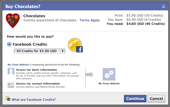 The real power of Facebook Payments comes in its tie in with Facebook Connect. Together they could one day let you make a purchase and fill in your shipping info anywhere on the web with just a click or two. Before privacy fear-mongers in the media and congress made Facebook retreat, the social network briefly allowed apps to ask for your home address, aka your shipping address. Eventually Facebook will bring this back. Then this frictionless purchase system could increase conversion rates for ecommerce stores enough that they’d gladly implement Facebook Payments and Connet…