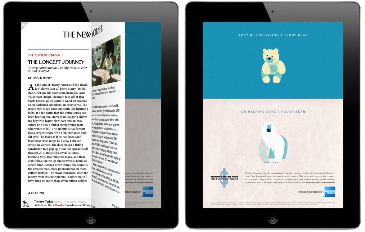 So the trick is for Facebook to make ads seem like content instead. Content we actually want to consume. Tiny boxes don’t do that, but large, high-impact full screen or near-full screen ads could. Flipboard and some other mobile apps have been experimenting with these big, glossy ad formats in their mobile apps.