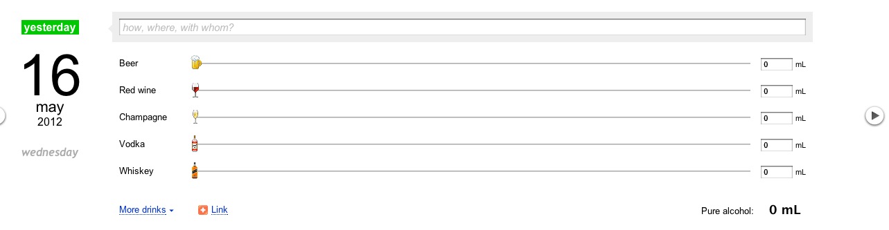 While the Russians are known for their heavy-duty drinking – although they’re moving from vodka to beer and wine these days, perhaps to prevent liver death – this site is ingenious in that it offers a very simple, hangover-proof interface for registering how much you sucked down. By sliding little drink indicators back and forth, you can tell the world or just yourself that you had too many beers.