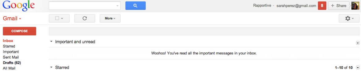 I expected a little more fanfare from Gmail. “Woohoo?” That’s it? Ah well.