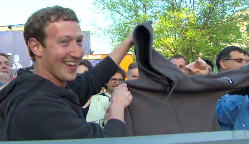Facebook’s CEO Mark Zuckerberg received a commemorative hoodie from the NASDAQ CEO Bob Greifeld and thanked his site’s users in opening remarks recorded before he rang the NASDAQ opening bell this morning.