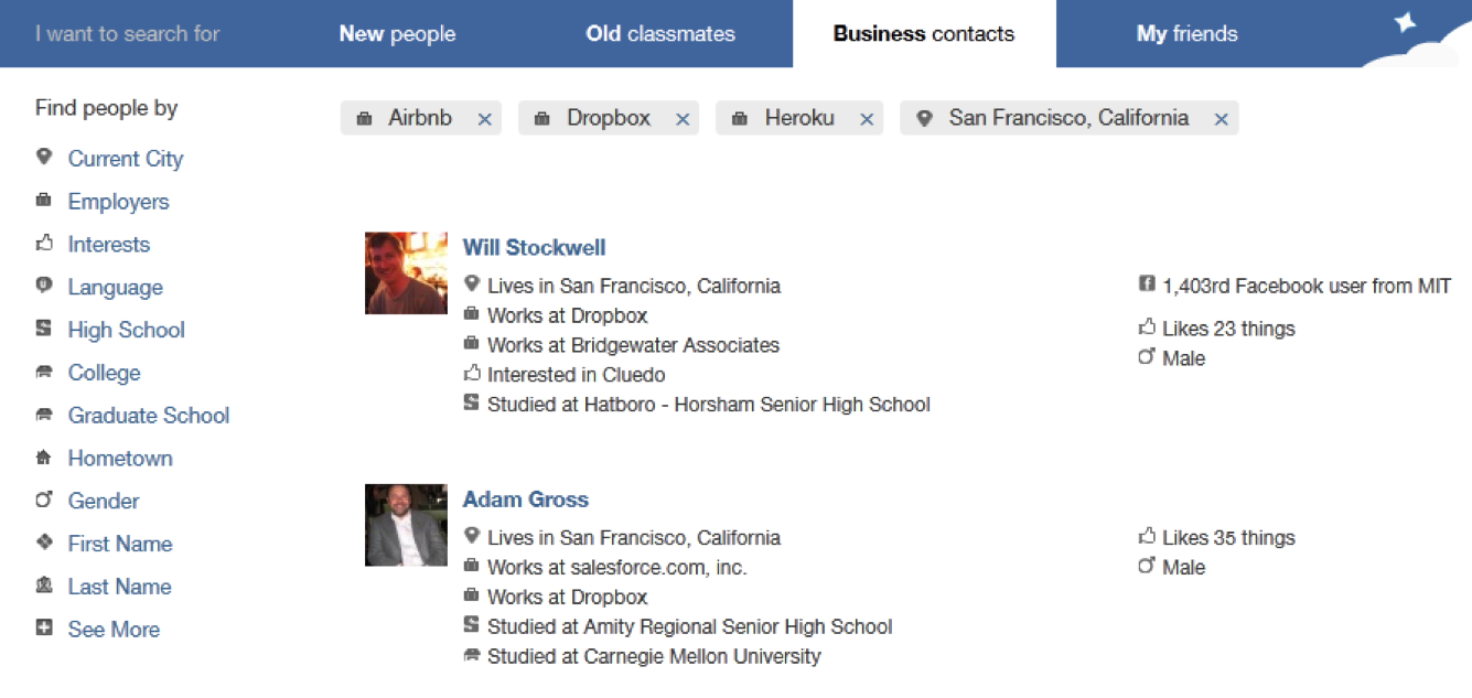When he says bigger, he means searching beyond profiles, but moving into Greplin’s territory — allowing you to instantly search through all your social data, including public posts, private messages, and even email. If you needed to find an address of a party but weren’t sure if you received in a Facebook message or Gmail, or even any keywords, you could one day use Ark to filter for street addresses, find that apartment number on Haight street, and go have fun. Soon it will launch native mobile apps that take advantage of geo-fencing to show you relevant info about where you are. They do predictive search so when you travel to a new city, it pops up a push notification showing how many friends currently live there. Ark could lead to those offline meetups every mobile app wants to inspire.