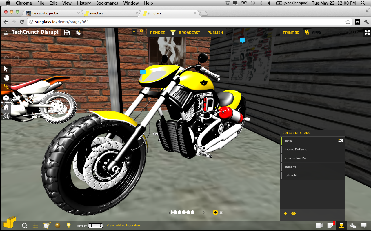 It’s also a bit social. Sunglass users can simultaneously access a single 3D model and suggest tweaks through chat or voice chat. There’s also a sketch tool for marking suggestions. It’s easier to share 3D models with embeds like this one on DeBiswas’ Tumblr. He says that helps with virally attracting new customers. There is also an API that lets designers build tools for others. Because Sunglass is a platform play, the company is hoping that developers will eventually build specific tools that others will want on an as-needed basis.