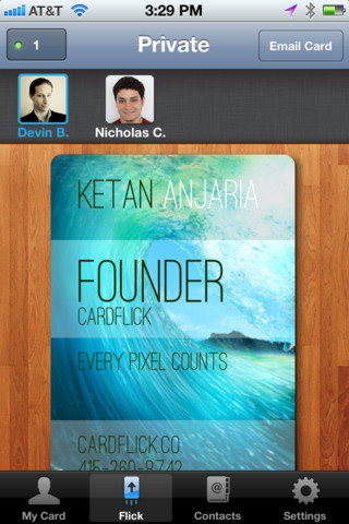 The winner of the Audience Choice Award during TechCrunch Disrupt San Francisco, CardFlick launched with an application for building digital business cards on your mobile device and sharing them with new contacts. Rather than bumping to share those cards, users “flick” them to other users who have downloaded the app.