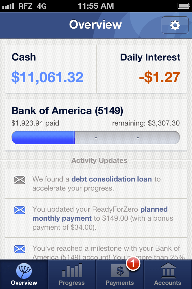 YC alum ReadyForZero, an online financial service that’s trying to get people out of debt faster, is today expanding to mobile with the launch of its first mobile app. For now, the experience is designed mainly to give you at-a-glance insight into your current debt situation. However, the mobile app also uses iOS push notifications to alert you to large purchases and payments which could impact your financial goals.