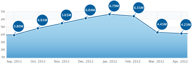 In April, the App Store Competitive Index, dropped by 4.9% to 4.23 million downloads, which is down from 4.45 million in March, 6.35 million in February and 6.79 million in the first month of 2012. “App marketers continued to scale back their use of robotic install tactics in response to Apple’s policy on third-party marketing services,” said Adler of the drop in downloads.