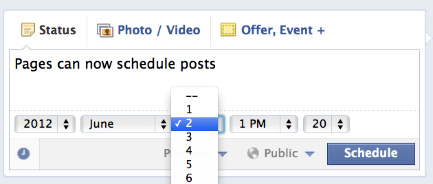 What once you had to use or pay for outside software to do, Facebook now offers for free. Facebook today rolled out Page administrator permissions and post scheduling. The two critical marketing features were previously only available in third-party Page management products like Buddy Media and Vitrue, which are fetching big acquisition prices in part because of these kinds of options.