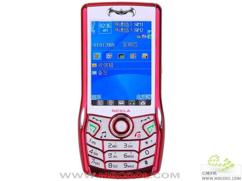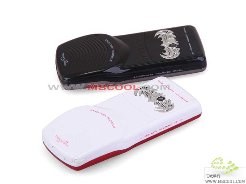About a year later, Shenzhen picked up on the trend. So, this isn’t necessarily Nokia’s obsession with Batman, but rather Nckla‘s (think Prado instead of Prada). This phone hit the web in June of 2009, and seemed to be the lovechild of a Spider-Man fan and a Batman fan. It came in both black versions, and white with red and blue trim. Along the back there is a large Batman symbol, which is a part of the loudspeaker, and the small speaker on the front is also emblazoned with a Batman icon. The phone also happens to light up in blue and red.