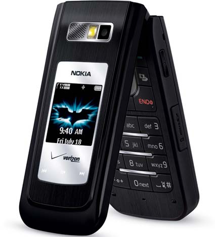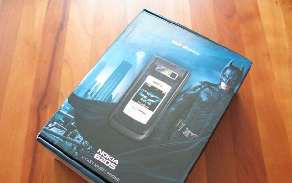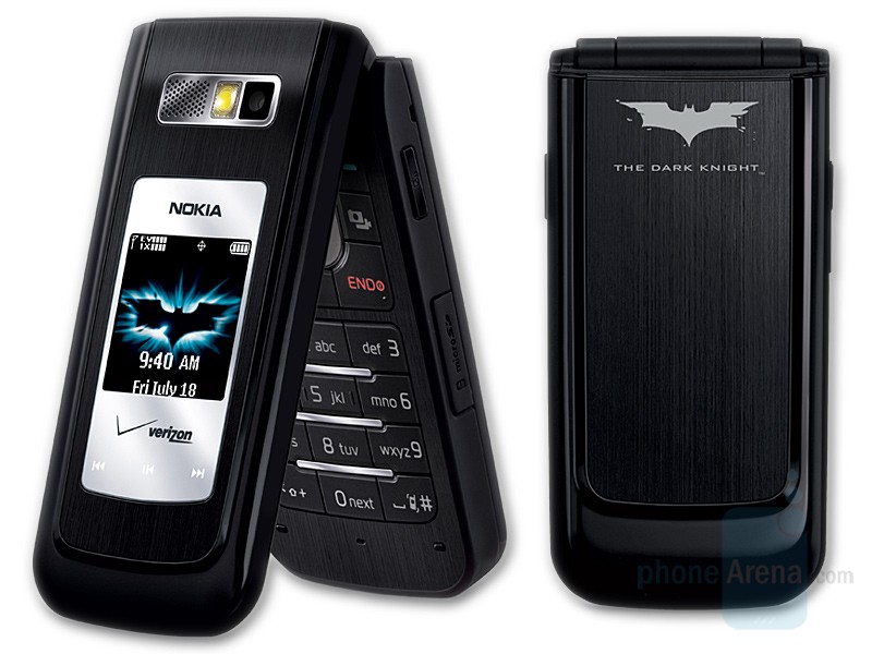 Then, in June of the same year, Nokia realized the potential of putting actual Batman imagery and design language on the phone itself, and came out with the Nokia 6205 Dark Knight edition. It was a basic flip phone, with a flash-enabled camera and tons of pre-loaded Batman content like ringtones and wallpapers. It had a Batman home screen background, along with a Batman icon along the back of the solid black (rather sleek) flip phone. Verizon sold the device, along with a white version for non-Batman fans.