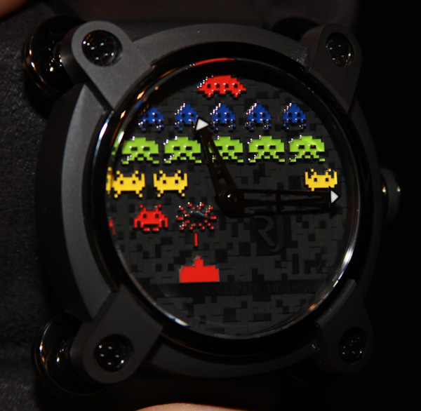 People keep asking, “Why would anyone of sane mind buy a $17,000 luxury watch with a Space Invader’s theme?” If you are familiar with the Swiss watch brand Romain Jerome – you don’t need an answer. They are the people that brought you pieces such as the Titanic DNA (with metal from the actual titanic), and the Moon Dust DNA (with yea… real dust the from moon and metal from spare parts of the Apollo XI). So a “luxury licensing” deal with Taito Japan isn’t that odd.
