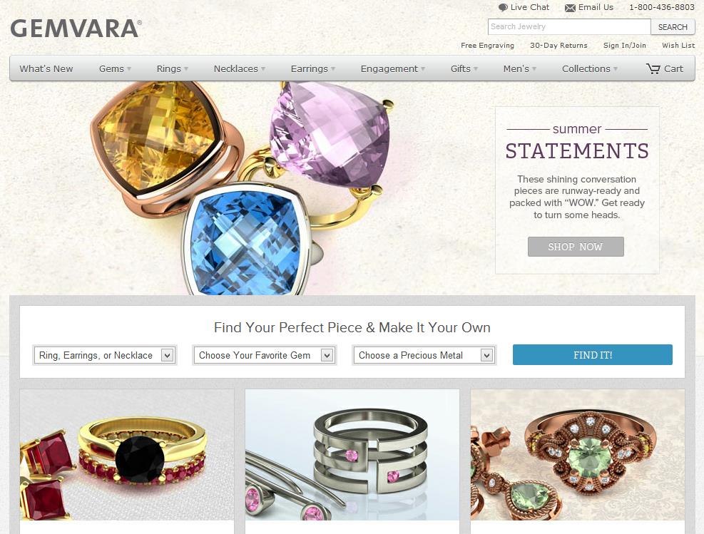 In its earliest incarnation, Gemvara once sold its jewelry through in-store kiosks at partner jewelers, but it abandoned this approach in 2010 and went online-only. The company now provides shoppers with about 1.5 million unique design options based on 1,500 designs that can be customized with 26 different gemstones and 8 precious metals. The final designs are the assembled in the U.S., “using just-in-time manufacturing to produce unique, made-to-order designs.” On its site, the company doesn’t use any photographs. Instead, users see computer-generated renderings of what their custom designs will look like.