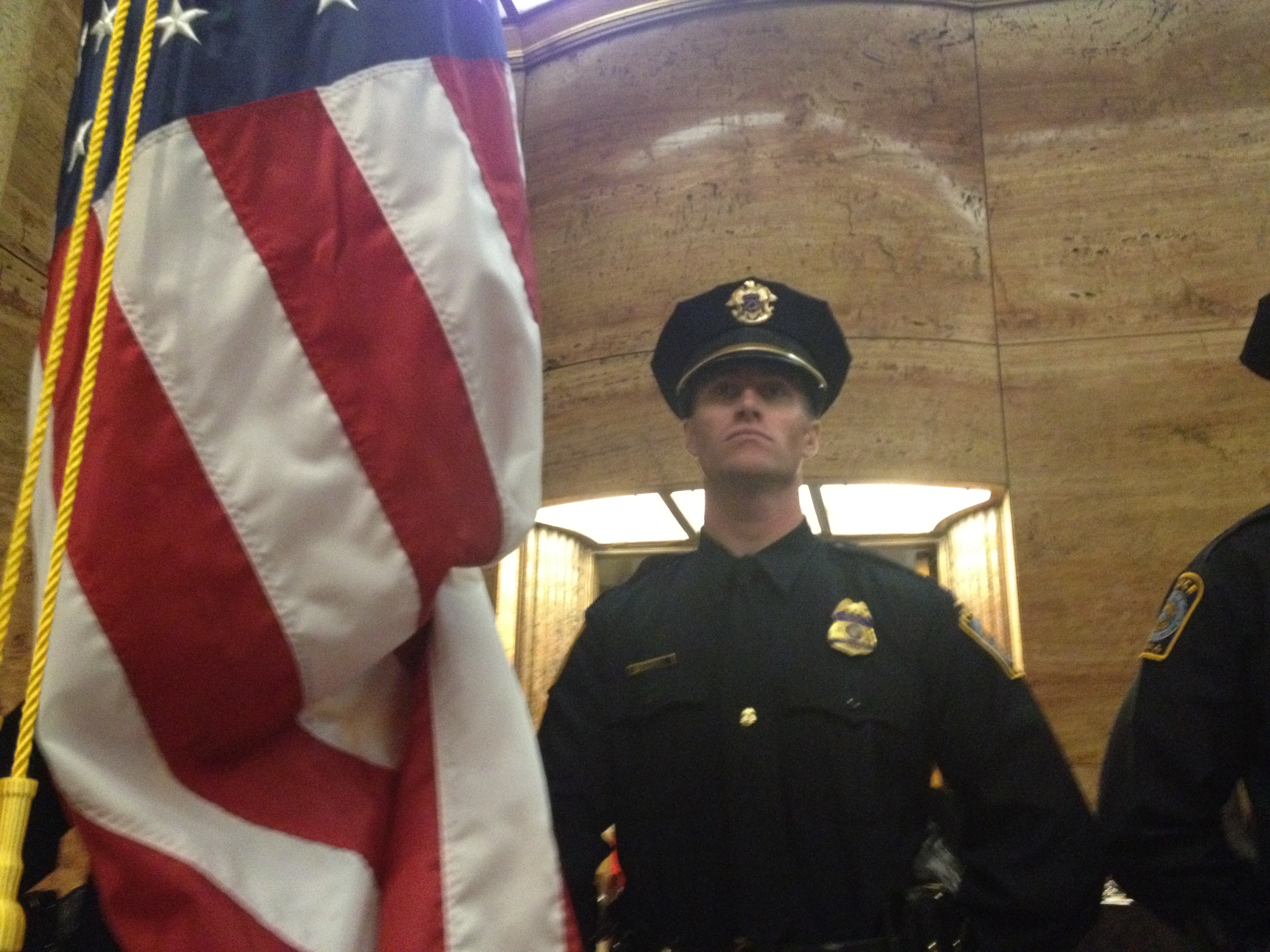 Once inside, the fun began. There was a really serious ceremony that actually made me well up a bit. Any time I see someone in uniform giving reverence to our flag ceremoniously, I turn to mush. There were plaques handed out and then our tours began. We were broken up into a few groups and we got paired with a news man who blew our minds. He was his own camera guy and everything. Like a genuine TV news guy. It was fascinating watching him and the benefit of him doing his own TV segments is that he slowed us all down and we got to get a lot of extra pictures and footage. Thanks TV dude!