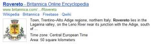 Results from Encyclopedia Britannica will now feature a thumbnail and some useful facts about the topic (as well as links to Wikipedia, Britannica, Freebase and – for those who don’t like to read – Qwiki).