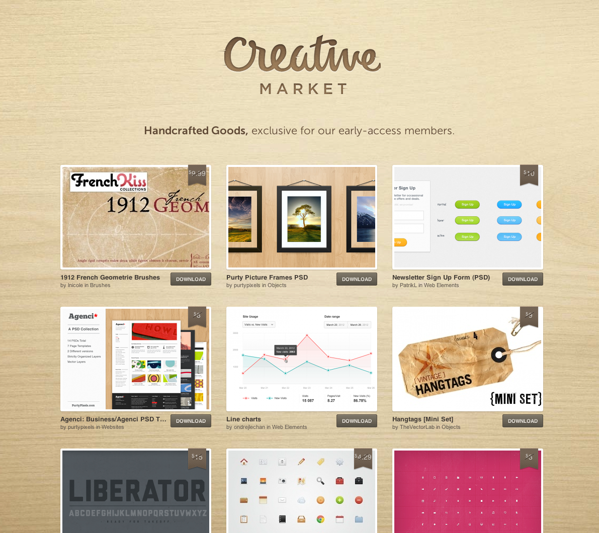 Creative Market will launch officially in beta in the next few weeks, with a full public unveiling expected for later this summer. You can sign up early and get $5 off its digital content here.