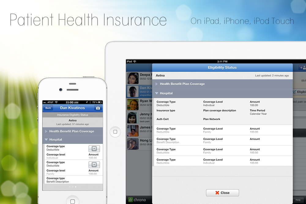 Specifically, the company is adding two new features to its product line-up today: iPhone patient payment processing, which allows doctors and staff to process payments using the Square card reader attached to an iPhone or iPod Touch, and a real-time health insurance eligibility checking feature which will integrate with Drchrono patient check-in app for iPad called OnPatient.