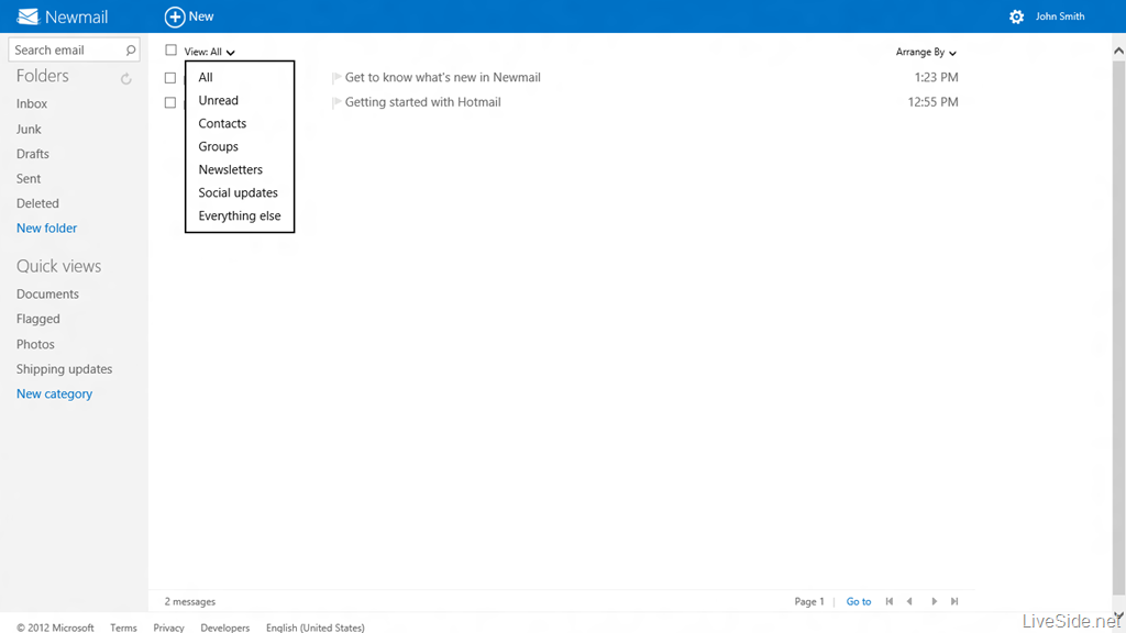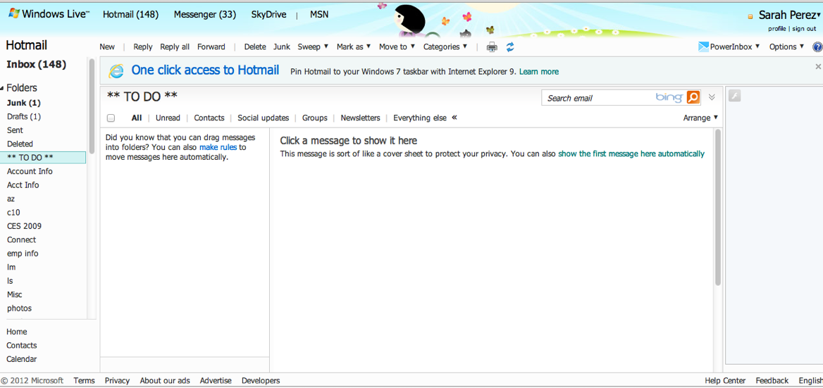 The details were obtained yesterday via Microsoft enthusiast site LiveSide, and they’ve now amassed a whole collection of screenshots showing the new Hotmail in action. In the photos, the service is oddly branded “Newmail.” (“Get a Newmail email address for your new inbox…” reads the welcome message, for example.)