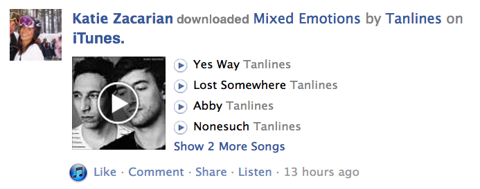 Apple could tap into the same well of virality by integrating Open Graph auto-sharing into iTunes on both the desktop and mobile. If users opted in, stories about the songs, tv shows, and movies they download, listen to, or watch could be published to the news feed, inspiring referral traffic and purchases. If you could listen to or watch previews of that content straight from the news feed, even better, but firing up a separate web page or the iTunes desktop/mobile app would be fine too.