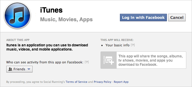 Apple can’t just push people into a Facebook data permissions step, though, or users could click through blindly, get surprised by what’s shared, and a backlash could ensue. iTunes + Open Graph’s opt in would have to be very clearly explained.