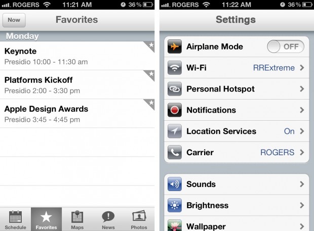 Judgment: This one seems pretty likely, as well. Not only has the WWDC app and iPad UI been silver since their inception, but the newly released iPhoto app has also been dipped in chrome. Everything about Apple is silver, from their hardware on the notebook line to the backside of the iPad to the Apple icon on most of the company’s brick-and-mortar stores. Why was iOS ever blue to begin with?
