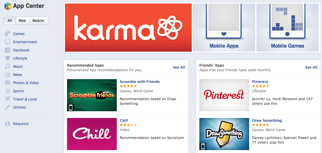 Facebook’s taking a similar approach to its new apps marketplace. It recommends apps based on what your friends Like and use rather than the oft-misguided wisdom of the masses like Apple and Google’s app store charts. It also highlights apps based on quality, which is calculated according to true engagement, positive reviews, and the absence of spam reports rather than the number of installs. This editorial philosophy could minimize the spread of pointless, spammy, click-bait apps.