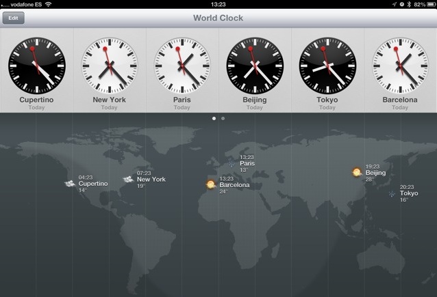 The iPad now has access to the World Clock and Weather apps and widgets, which had previously been iPhone-only. (via/image via iPadJailbreak)