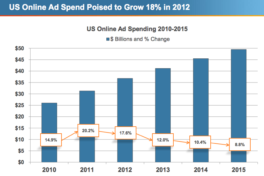 On the online ads front, comScore found that AT&T, Microsoft, Experian, State Farm, and Weight Watchers were the top online advertisers in March. AT&T was by far the largest, with 9 billion impressions. The firm predicts nearly 18% growth in online ads for 2012.