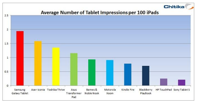 I particularly like how Chitika has to leave the iPad out of its chart visualization altogether (pictured above), so we can even spot the differences between all these other tablets.