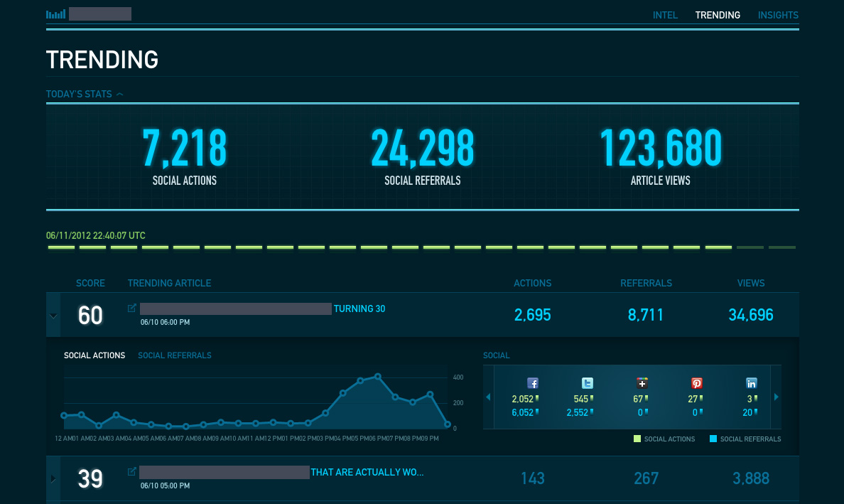 And, in that (most basic) sense, Insight has the flexibility to be interval-based, so that every three hours the solution will push info on which social networks are driving the most traffic. Or it can be event-based, so that it will let users know if an article receives more than two thousand tweets today, for example. And depending on the use case, SimpleReach can offer customers a standard stock of insights or the ability to build custom ones.