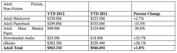 The only growth in hardcovers is in the young adult/children’s category where hardcover revenue rose to $187.7 million and children’s ebooks rose to $64.3 million, up from $3.9 million in 2011.
