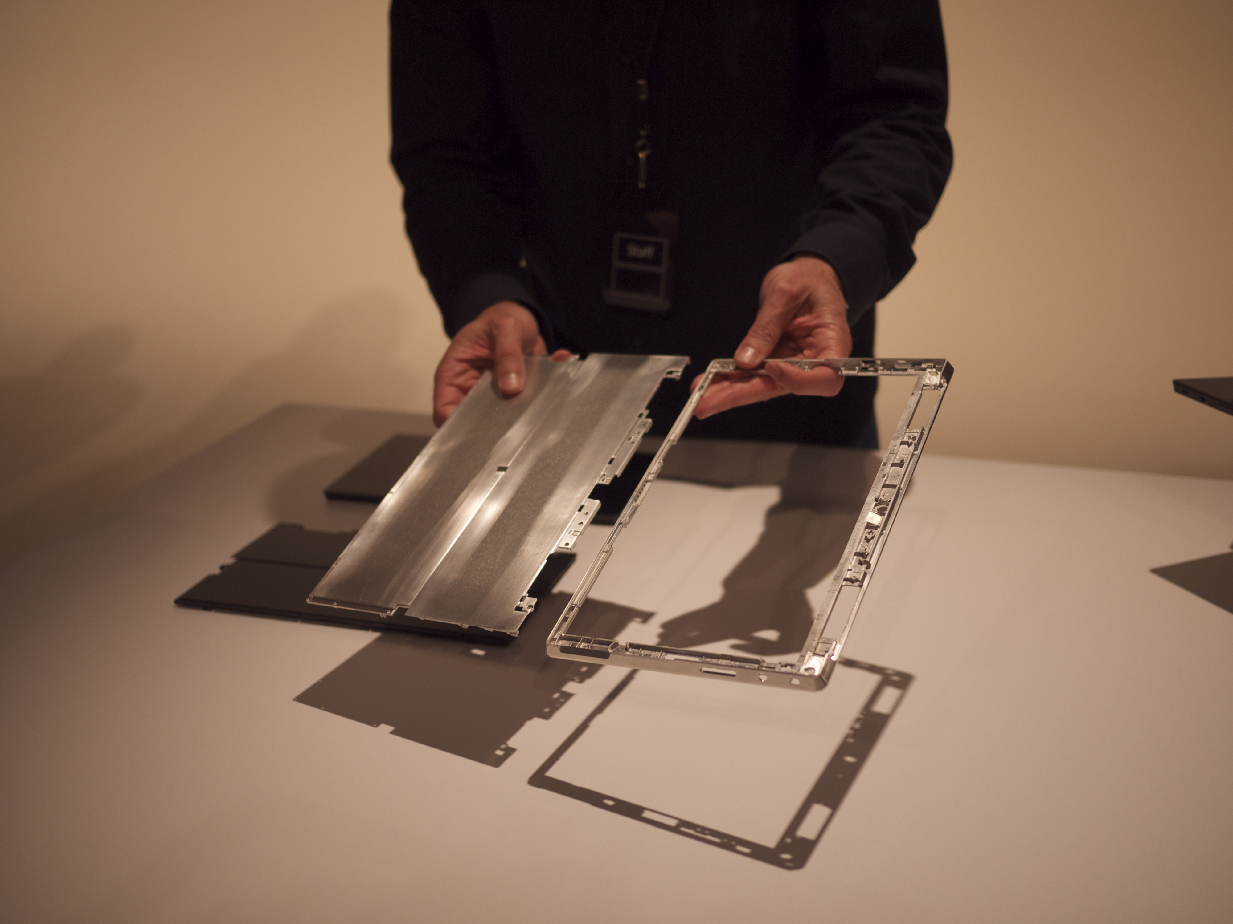 Then we looked at some of what’s made up the device — Vapor MG, the trademarked Magnesium alloy developed by Microsoft that makes up both the inside skeleton and the outside of the Surface. Microsoft is proud of this because it’s both strong, lightweight, and sleek — several times they pointed out to us that it’s far superior to plastic, which is pretty clear when you get a look and feel of it.