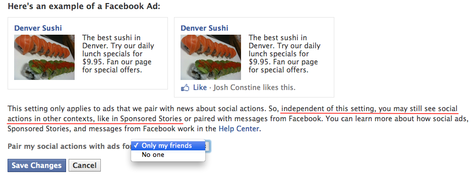 Legality is one of the last hurdles to the success of Sponsored Stories. Facebook settled a class-action lawsuit in California last week for using people’s likenesses in ads. It doesn’t currently offer an opt out for Sponsored Stories, but may eventually have to. Still, the setting would likely be buried deep enough to avoid too many people turning the offer the money-maker.