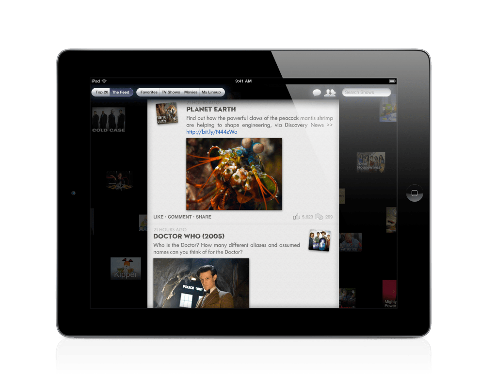 One of the main new features in the app is a “feed” that is provided on the main level of the app, which provides users with a personalized stream of content related to shows that they’ve liked on Facebook. It also has been added to yap.TV show pages to display related content inside the app.