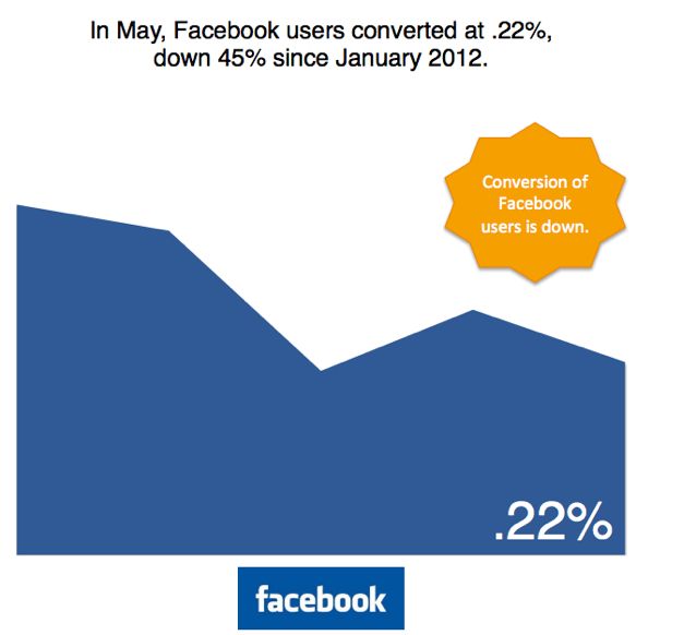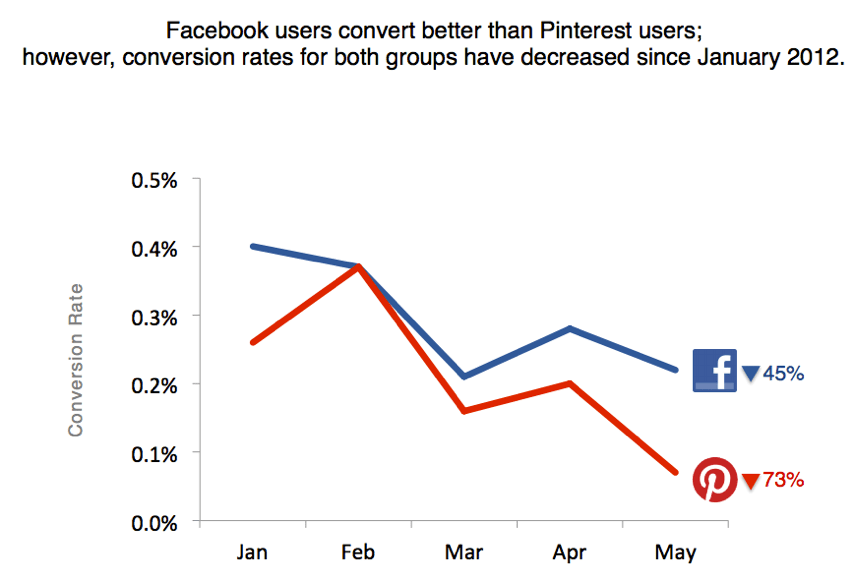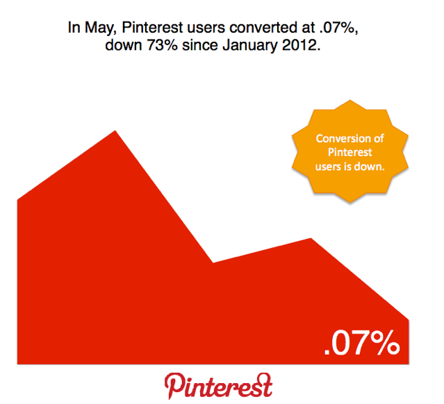 In fact, despite strong growth in visits from Pinterest, conversion has “dramatically” decreased since January 2012. Pinterest users now convert at .07%, a 73% decline since January.