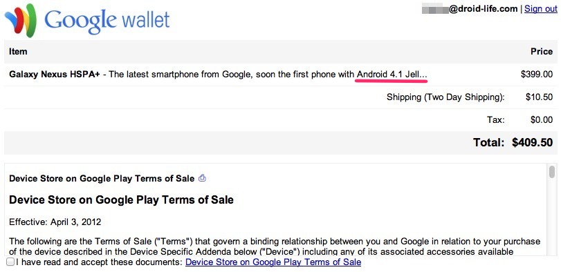 Well isn’t this interesting — with just about five days to go until Google’s I/O conference, the company may have just accidentally spilled the beans about their next big Android release. For a brief time, users who tried to purchase an unlocked Galaxy Nexus from the Google Play store was greeted by a blurb describing the device as the “the first phone with Android 4.1 Jelly Bean.”