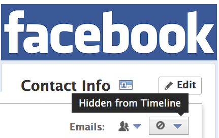 To undo the damage and revert back to the email address visibility you had before, visit your profile and click the “About” link on the right side below your cover. Then in the bottom right click “Edit” in the Contact Info section, and in the top right toggle “Hidden from Timeline” to “Shown on Timeline” for all your personal email addresses (and hide your @facebook.com address if you don’t want emails coming to your Messages inbox).