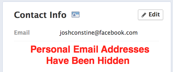 Now everyone’s personal email addresses have been hidden from their profiles, regardless of previously selected privacy settings. Instead, your @facebook.com contact info is the only one visible to people with permission to see your email addresses. This makes it harder for friends to contact you via third-party email unless you reset your controls.