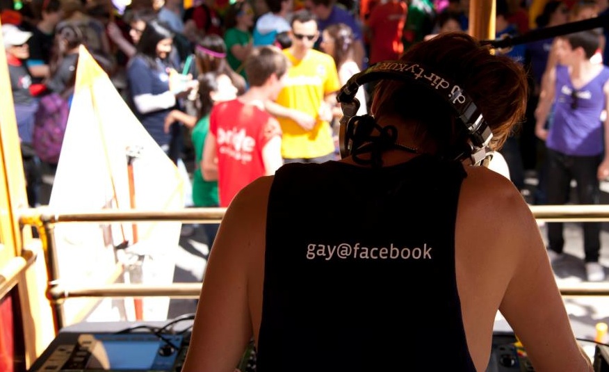 It is a social network after all, so Facebook had a DJ playing to the crowd as its trolley car drove through the parade
