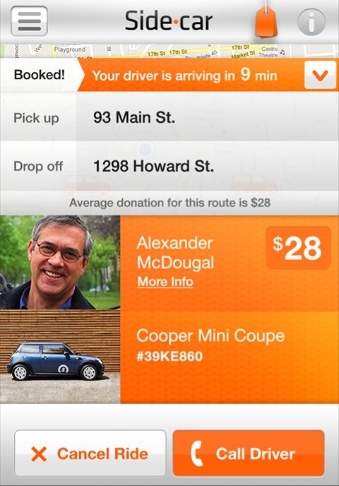 Punch in your location and destination and soon a civilian SideCar driver agrees to take you. Plus, thanks to background checks and a rating system (which we grill CEO Sunil Paul about in a video interview below), you might be less likely to be murdered than in a traditional cab or meeting anyone on Craigslist. SV Angel, Lerer, Ventures, and Mark Pincus are all investors, because they see how SideCar could rethink transportation, and make it so you never buy another car.