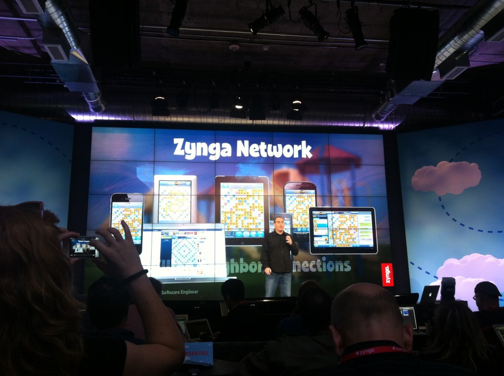 This appears to mean that you’ll be able to play with people from iOS devices while you’re on Facebook, for example, sharing all of your user data back and forth so you can see things like who won the last game — although we’re trying to confirm the exact implementation. At least, the Zynga With Friends profiles will carry across all of its games.