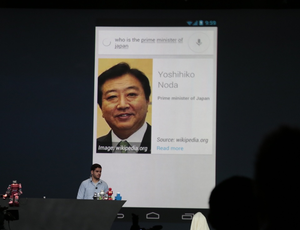 - As expected, Google has revamped their mobile search experience, and that begins with the UI. Searching from the Google bar brings up handsome white cards that display information culled using the Knowledge Graph. Also on deck is improved voice search, and it seems awfully Siri-esque in how it can display and read out search results with a very natural sounding female voice. Swiping away those response “cards” reveals regular search results.