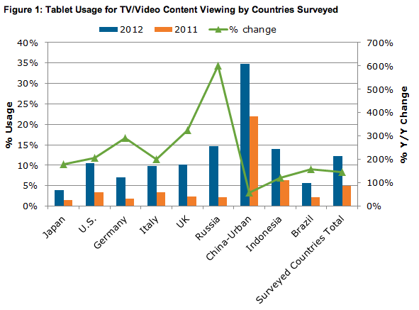 But this, too, appears to be changing even in developing markets. NPD notes that Turkey happens to be the fastest-growing country for tablet usage among those that it surveyed. In 2011, only 3.1 percent of consumers had tablets and now that penetration is up to 16.5 percent.