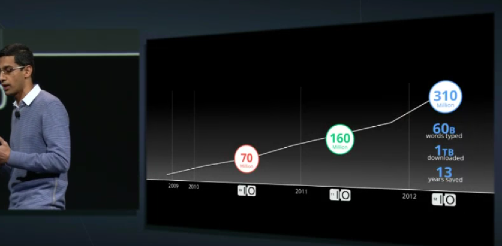 Today, however, there are still too many people who can’t get online. Over the next few years, much of the growth of the Web will come from mobile users, and that – said Pichai – is why Google is putting so much effort in making Chrome work well on mobile now and is making it the default browser on its new Nexus 7 tablet. With the help of mobile, says Google, “we should be able to get the entire world’s population online.”