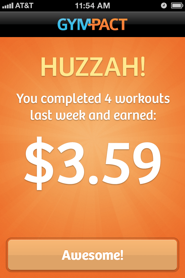 So, rather than dishing out badges, points, prizes, or even cash, GymPact believes that the true impetus for healthy behavior (other than peer pressure) is negative motivation. Oh, and also cash. The check-in app works by asking users to create a “Pact,” in which they set a goal for how many times they’ll exercise in a given week, along with the price they’re willing to pay should they fail to meet their goals.