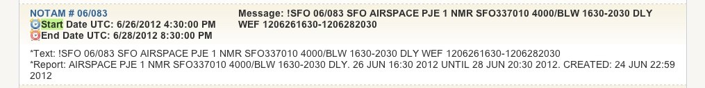 The FAA issued a NOTAM (Notice to Airmen) #06/083 with a warning that a parachute jumping exercise could be taking place over San Francisco on Tuesday, Wednesday and Thursday morning.