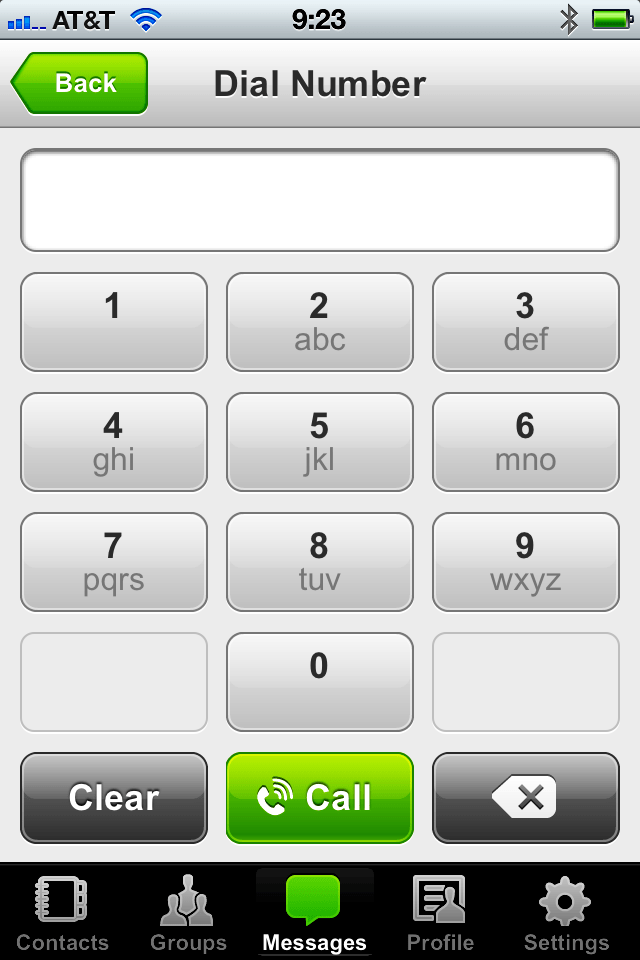 This is an improvement on the previous setup, which only allowed users the ability to accept voice calls, not make them. Voice calls were previously routed to personal cell phone numbers, as Google Voice does today. But now, users of any device, whether a “dumb” phone, Android, BlackBerry, or anything else, can place a call, even if they don’t have a native app installed. They can also text, sending messages to both groups and individuals, using their phone’s SMS.