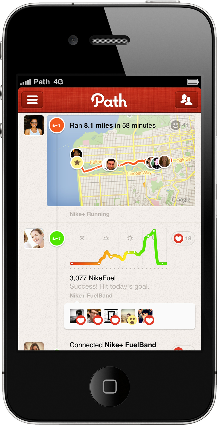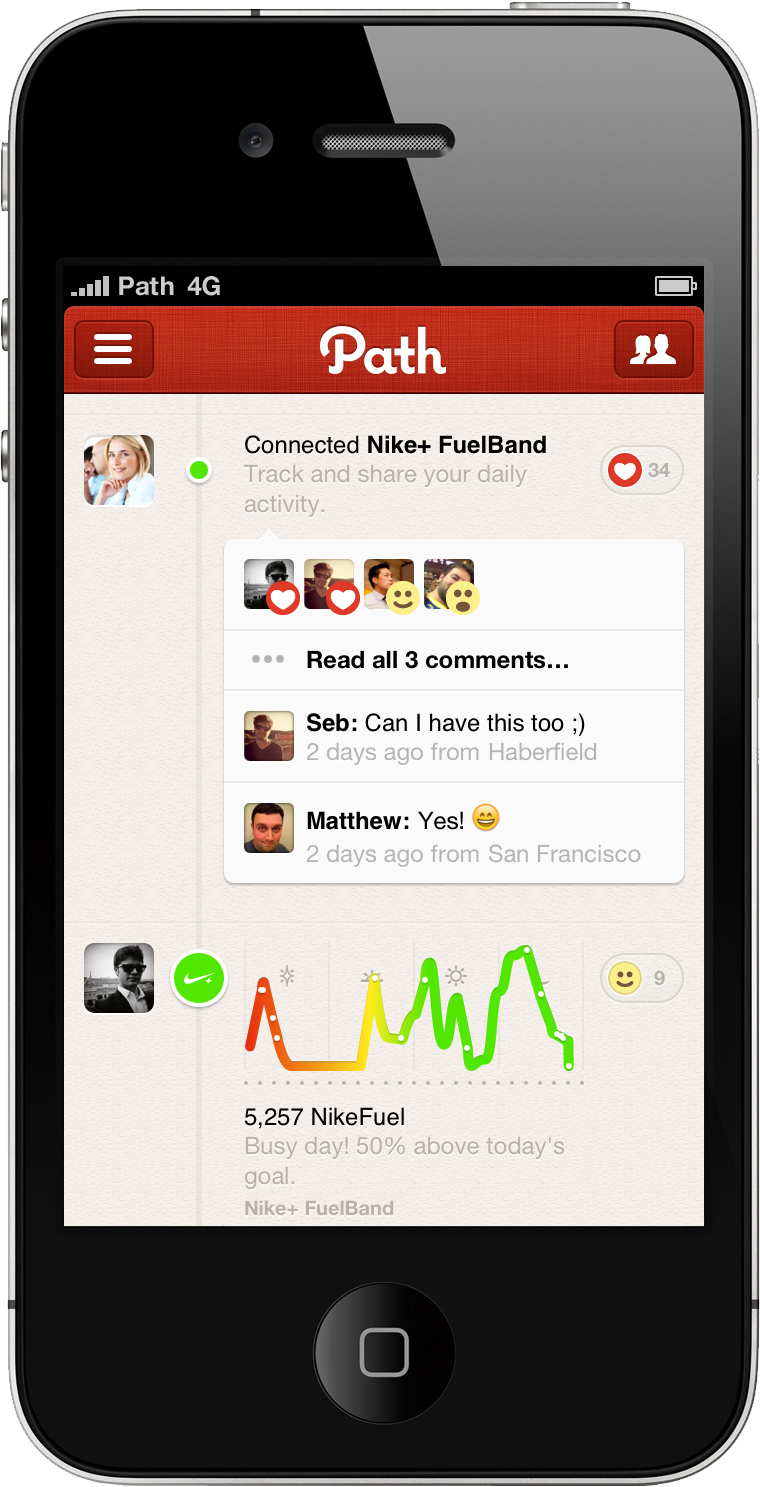 Path to greater fitness, I suppose (har). Because the private social network has a new update out today, that pairs its mobile-only app with the Nike+ Fuelband so that the device on your wrist can use the device in your pocket to tell your close friends just how active you are each day.