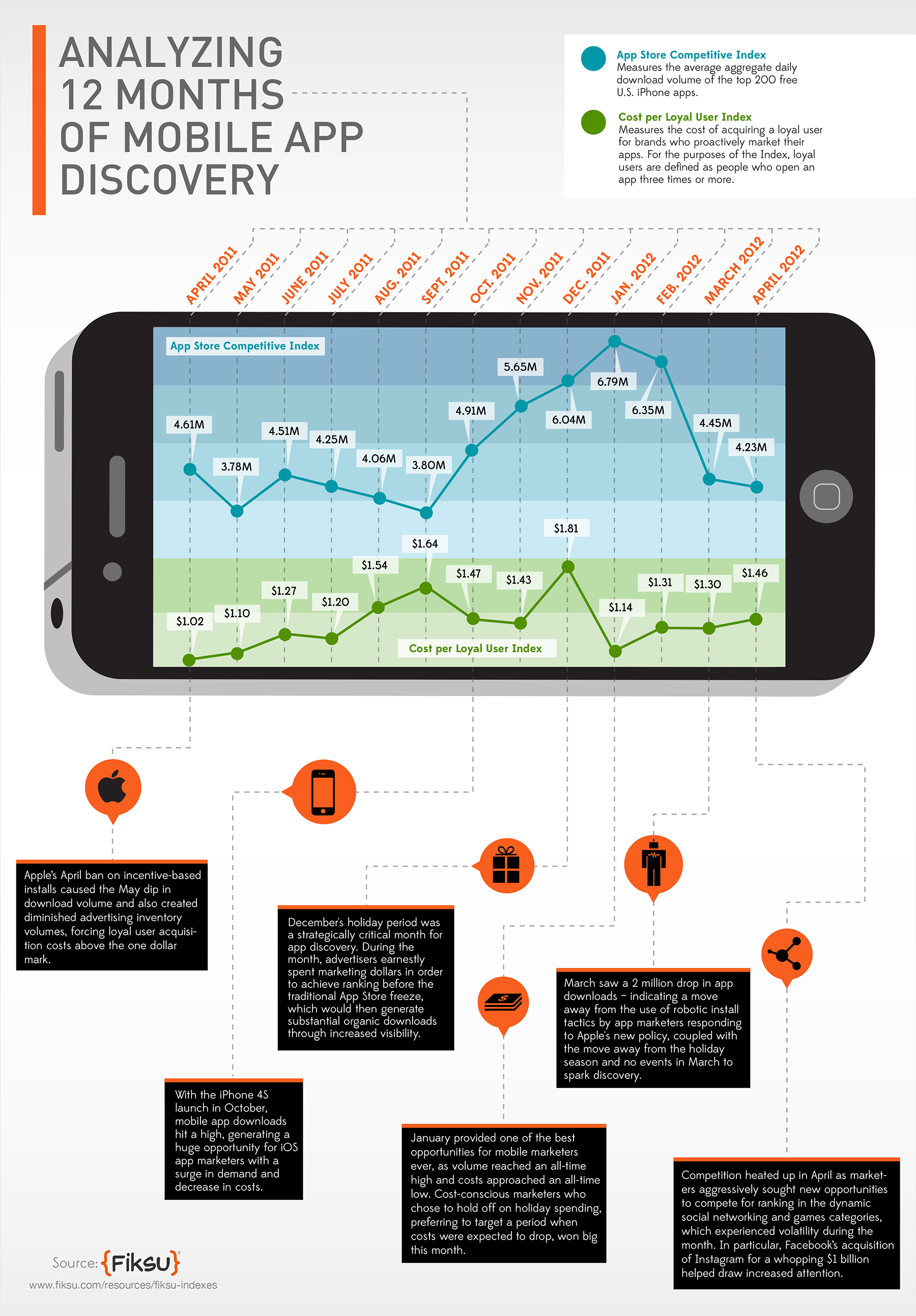 “Amid concern around Apple’s speculated deprecation of UDID, compounded by a host of confusing alternative UDID-less tracking technologies, we observed inertia,” said Fiksu’s CEO Micah Adler. “It appears that brands’ caution may have contributed to the dip in acquisition costs.”