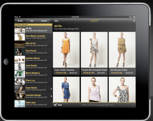 There’s a plethora of iPad games, and you can download almost any movie or tv show from iTunes, but the shopping experience leaves a lot to be desired. When I first turned on the iPad, I went through and downloaded all the popular apps I recognized. In the shopping / ecommerce category, this was Gilt and Fab.